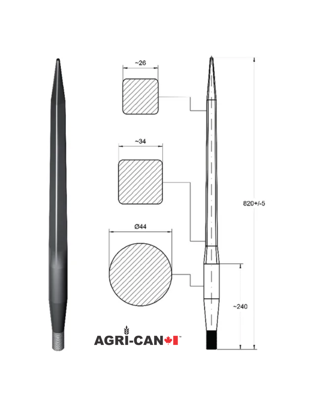 - Tines: hardened and tempered ( hardness 45 – 49 HRC)
