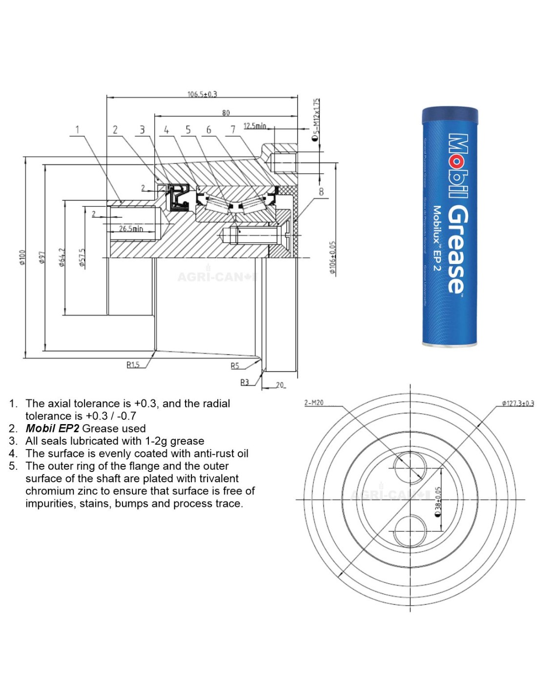 Moyeu complet de disque pour les herses/déchaumeurs Horsch.