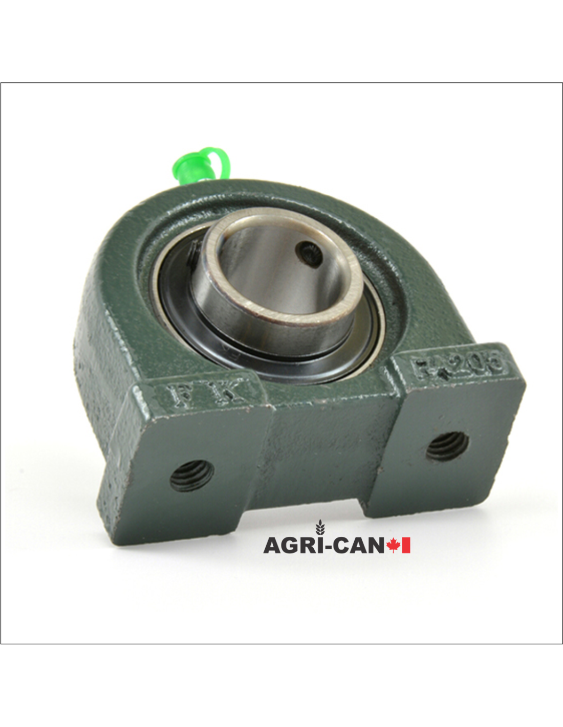Roulement à billes monté sur palier à semelle avec vis de serrage.